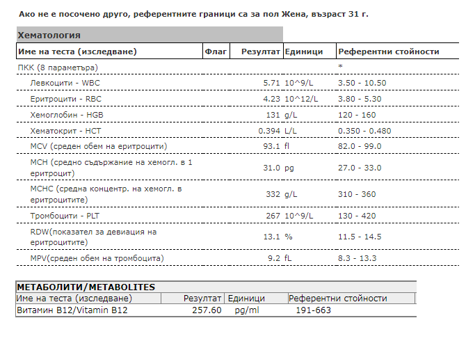 Може би трябваше да разкажа повече. Детето е с нисък хемоглобин, ниско желязо ( с ,03 единици, но под долната граница). Аз съм с нисък В 12.