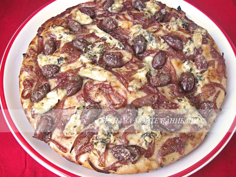 Иначе аз със суров лук, грозде и сирене правя Бяла пица, много любима у нас и харесван от цялата рода, дори от ММ, който не харесва плодове със сирене.