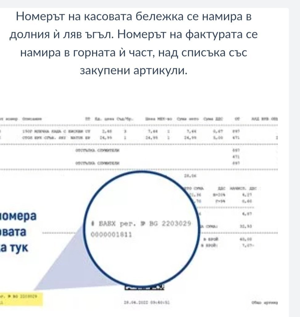 Някой ще ме светне ли на новите касови бонове от Метро кое точно е номера на бележката. На втория ред, където е телефон има 2 номера 11цифрен и 9 цифрен. Имам да регистрирам 4 поредни фактури и не мога да се ориентирам, защото и двата номера са поредни и различни.