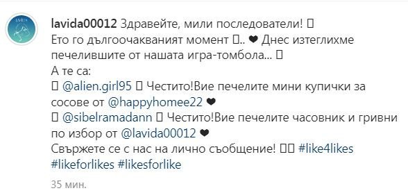 Не мога да намеря предните постове.Някой помни ли Сибел от инстаграм,която беше спечелила няколко награди с различните си профили от Лидл и някой си (не помня кой ) ? Дали го оправиха тогава? Току що изтеглиха печеливши в една игра и гледам същата Сибел . Влизам в  нейния профил и на другия печеливш да видя сторитата за някоя нова игра и какво гледам-сторитата еднакви Grinning Няма как да е съвпадение,защото бяха някакви чуждестранни giveaways , също и се тагват една друга. А и Сибел в един от фалшивите си профили (които съм видяла в темата) преди се пишеше с 95 също. И след малко гледам-и двете си заключили профилите,т.е. не може да се видят сторитата повече Grinning