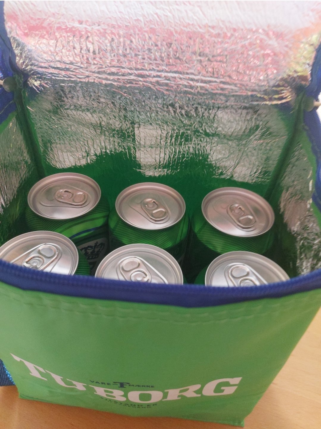 Лео експрес донесе наградата от Туборг - хладилна чанта с 6 кенчета бира. Чантата е дребна, колкото за кенчетата.
