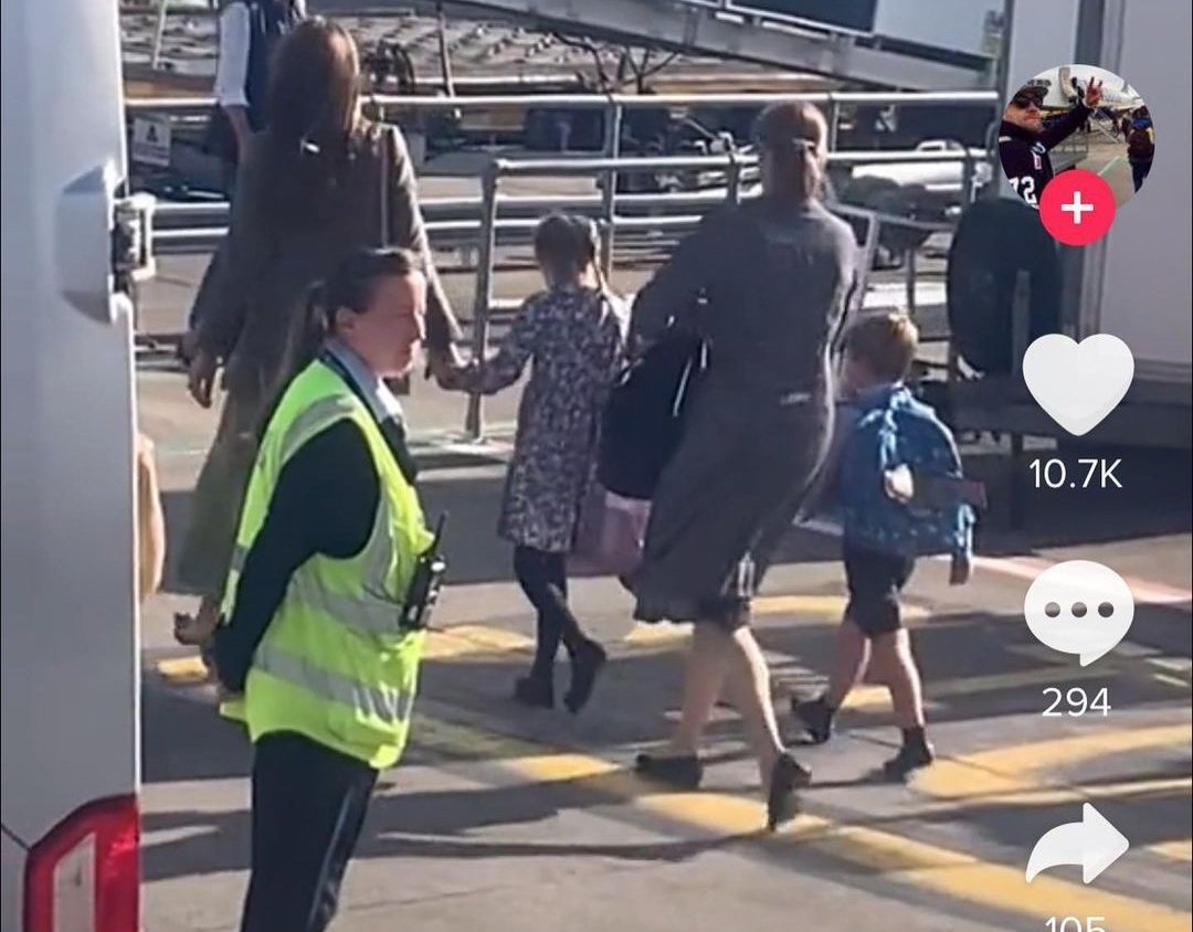 Кейт, Шарлот, Луи и детегледачката на летището вчера. Пътували са към Балморал с комерсиален полет.