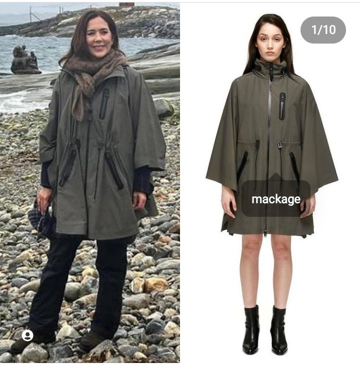 Дънките, бежовият пуловер и палтото на Мери също са много хубави.