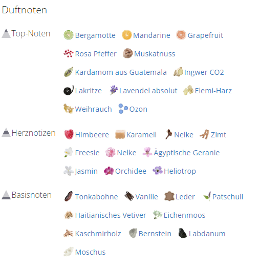 Модерен, клубен, топъл, мъжкарски и разбивач на женски сърца. Кожа, тонка, пачули, и тъмна солена лакритца. Карамел, канела, кардамон и орхидея, с прекрасни цитруси и присъствие. Чуден! Аз усещам и кафе, и е истински разкош. Пробвайте го!
