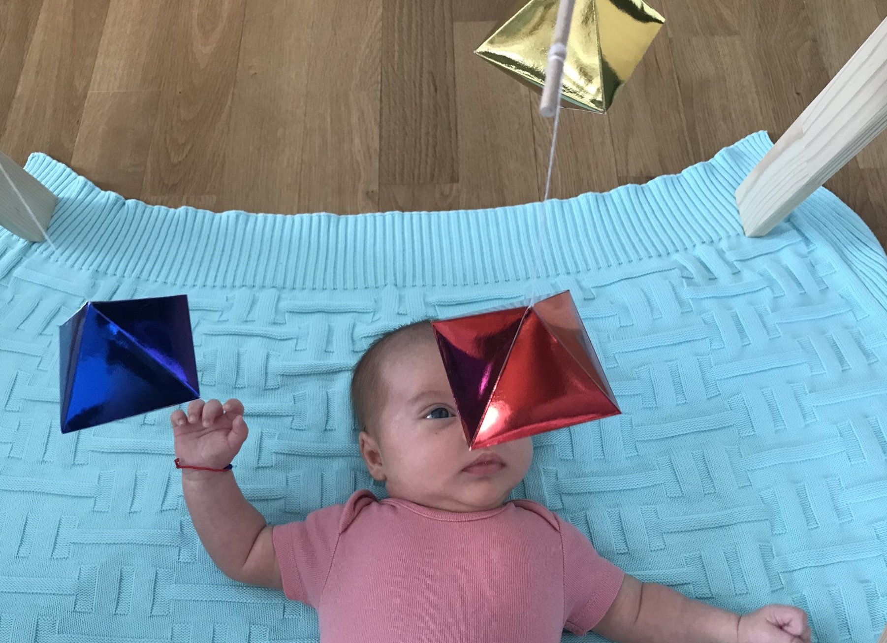 Аз минавам да покажа малката какъв интерес проявява към направената от татко Монтесори въртележка 🙂