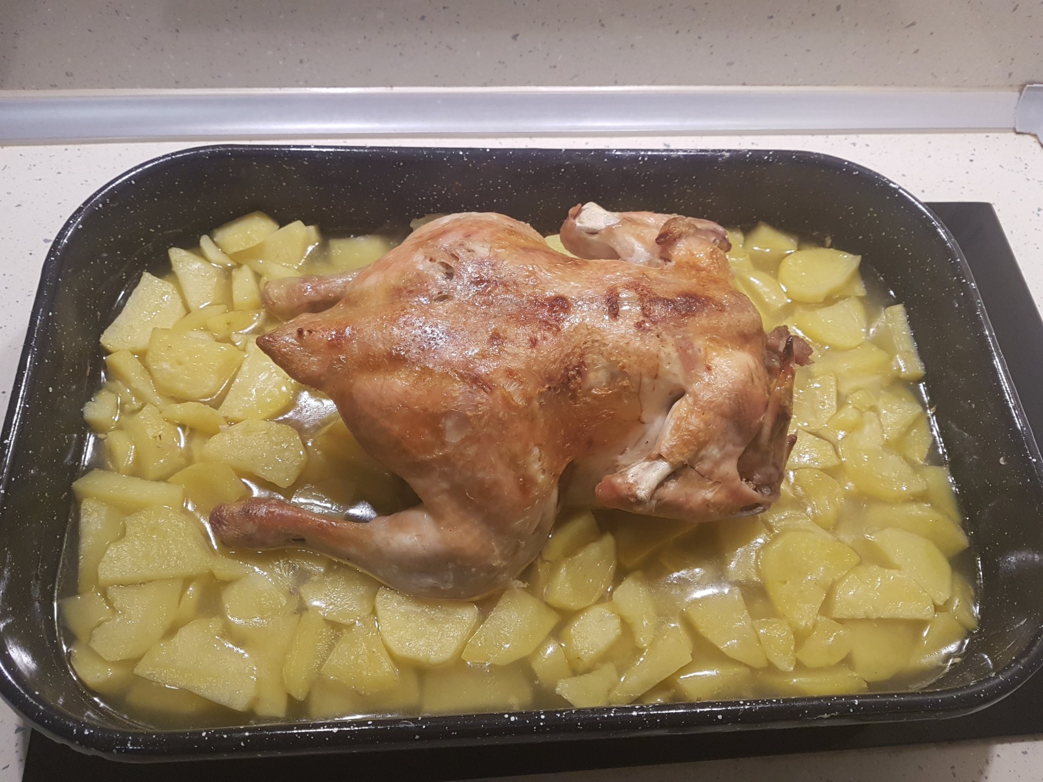Направих си страхотно пиле с топящи се в устата картофки. Мммм, от кога го мислех!