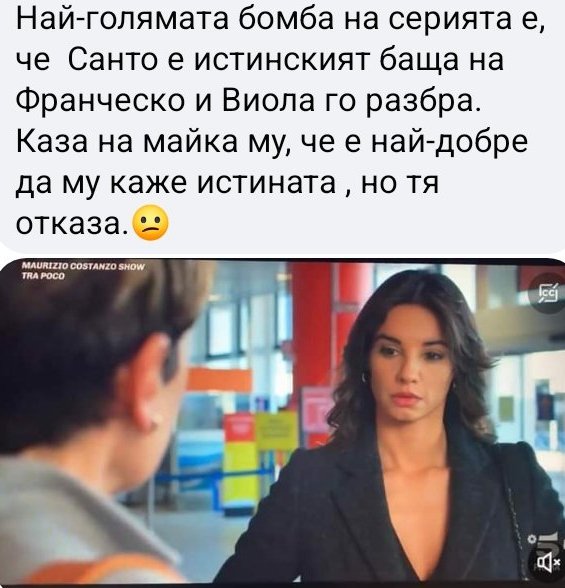 Леле, какво прочетох във ФБ групата. Направо нося скрийншот. Аз предполагах, че Санто е бащата на Виола, а то на Франческо се оказва...