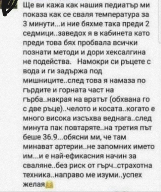 Ние определено ще запомним тази Коледа…но не както очаквах🎅😬 Натръшкахме се всички, включително и най-малката. И вече 3 ден е с температура като днес за първи път вдигна 38,7 и то без дори да я усетя🤔нито беше топла, нито замряла и като видях термометъра ми стана зле.  Чух се вчера с педиатърката каза че няма за какво да се притеснявам при положение, че сваля температурата за минути, независимо дали е Панадол или Нурофен. Като изключим днес беше с около 37,5-7. Утре пак ще ѝ звъня че вече е 3 ден😩 иначе си има апетит както обикновено, свежа е през повечето време и силно се надявам да се разминем до ден два🍀. Взех и някаква хомеопатия от днес.