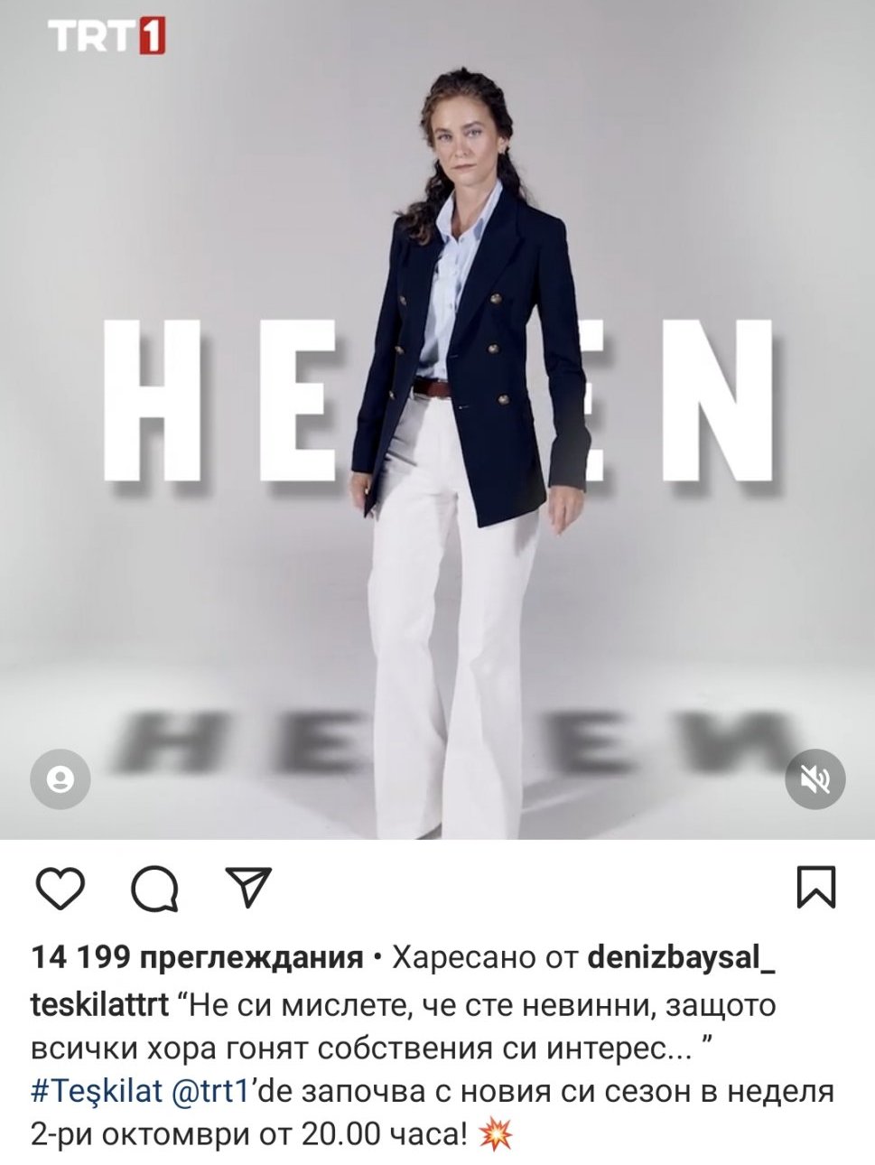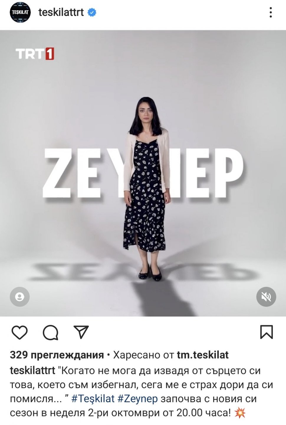 Актрисата, която ще е Зейнеп как се казва знаете ли? И нейният мъж умира пред очите й, ама за него не ми е тъжно 😆