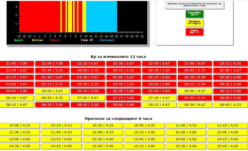 Няма как да имаш геомагнитна буря при такива скорости и такова динамично налягане на слънчевия вятър, няма как да имаш буря при такива стойности на Dst индекса  и при при  индекс Kp<5.5. Цитирах ти местата, където се определят тези неща (включително и България, която дава данни на световните мрежи), а какво е казал някой си Боби, няма никакво значение. Той може и някакви прогнози да гледа, но те обикновено са много неточни. Това е така, защото като движещото се Слънце "изригне", не е ясно баш накъде в Космоса ще започне да се движи тази плазма и  дали ще достигне Земята, за да смути нейното магнитно поле, така че смущението да достигне ниво "буря".