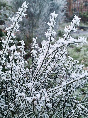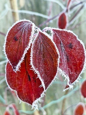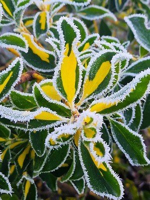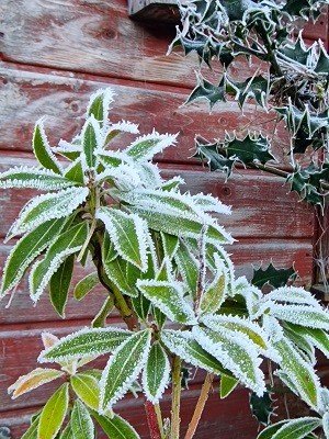 Досега съм увивала само растения, насадени в почвата, не саксиени, а и с малко по-голяма толерантност на минусови температури. За пеларгониума пише че въобще не трябва да е под нула, а и това е в плитко съндъче и се опасявам да не му измръзнат коренчетата, ама ММ реши да експериментира и го уви вместо да го мести вътре, че не остана много място. Иначе одеалцето е на два пласта, отгоре беше станало на кора с лед, но отдолу рестенийцето не беше замръзнало, изкара няколко минусови нощи без проблем, сигурно можеше и повече, не изглежда да му влияе засега. Обаче днес за всеки случай го прибрах в лятната стая, да не го веят ветрове, че това не успях да го размножа от резник, а ми харесва как бухна като поотрасна.