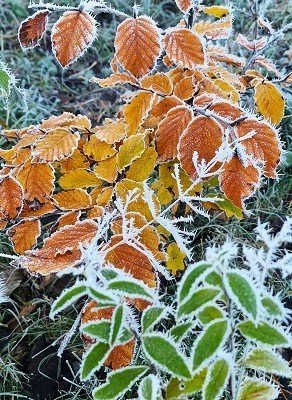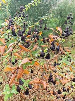 Доста растенийца цъфнаха късно сега като ги наквасиха обилно валежите след сушата, и тези дни изпозамръзнаха. Имаше латинки, невен, абутильон, гаура, по  някоя лобелия, но ги скапа мразът. Има още по някоя камбанка, не ги плаши леда. Мини-розата замръзна, стопи се, държи, макар че леко погрозня. Един рододендронзащо цъфти не знам, и то в различен цвят от пролетта, тогава е кремав, сега е розов Thinking Метлата почна да цъфти, ама то си е шашава порода. Сега погледнах, тук-там шареничко, не всичкото е цвят, но ми замръзнаха ушите и се прибрах скоростно 😁ММ отсече, че няма място за още саксии вътре и само уви мушкатото навън.