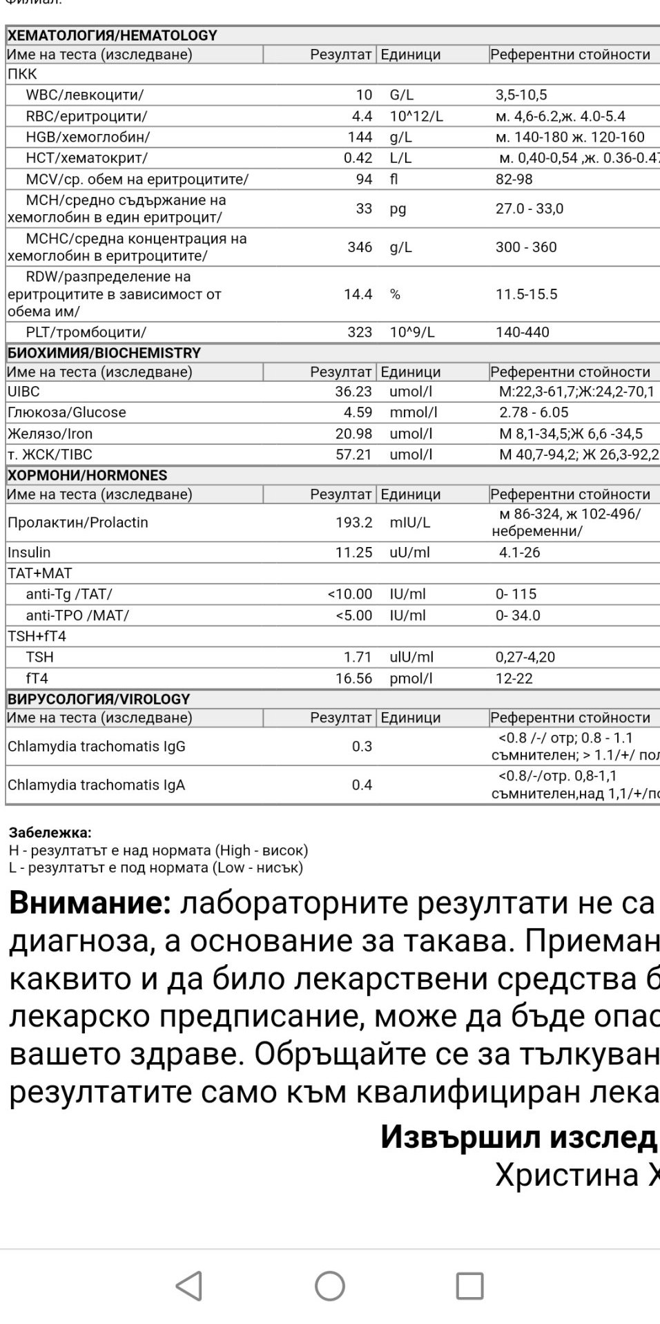 *Знам, че Пролактин не се изследва сега, но явно е бил в пакет и са и го пуснали.