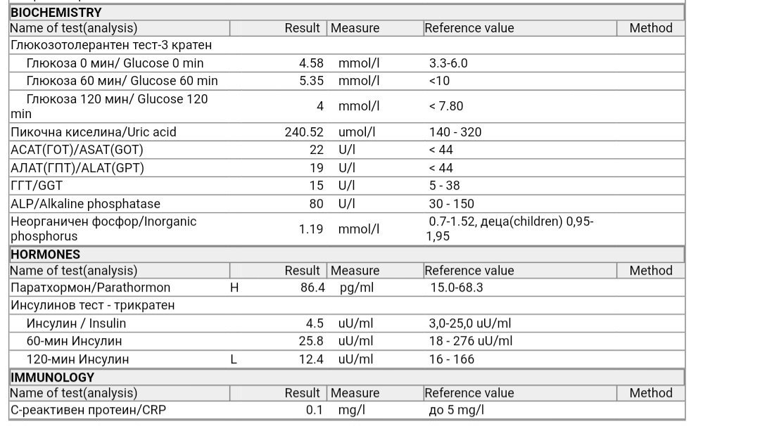 При тези резултати, не виждам какво може да е причина за симптомите, които описваш, освен ГХ и да си с ИР, напр.?!