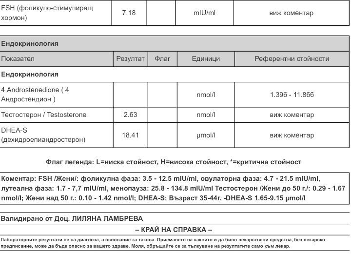 Денис моля за коментар на моите изследвания. Направени са на трети ден от цикъла, на 41 г. съм. Поставям ги в скрит текст.