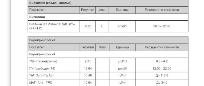 Витамин Д януари беше в дефицит, но сега е по-висок (33 при норма 30-100, знам, че все още не е оптимален, целя се в стойности около 50). Изследвах и фолиева киселина и Б12, стойностите ми са в средата на референтните.