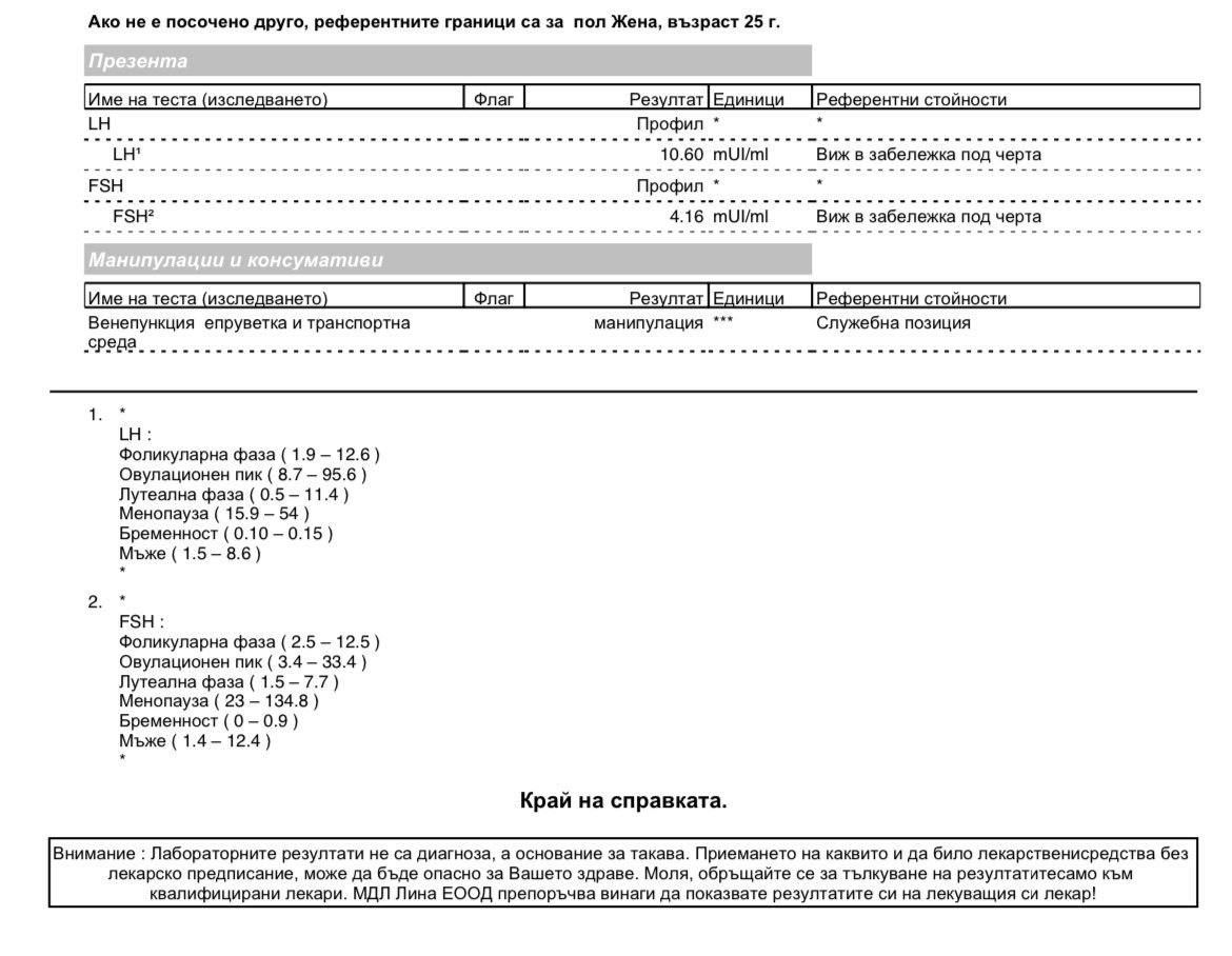 Извинявай, но реф. стойности не показват ли, че ЛХ е в норма?