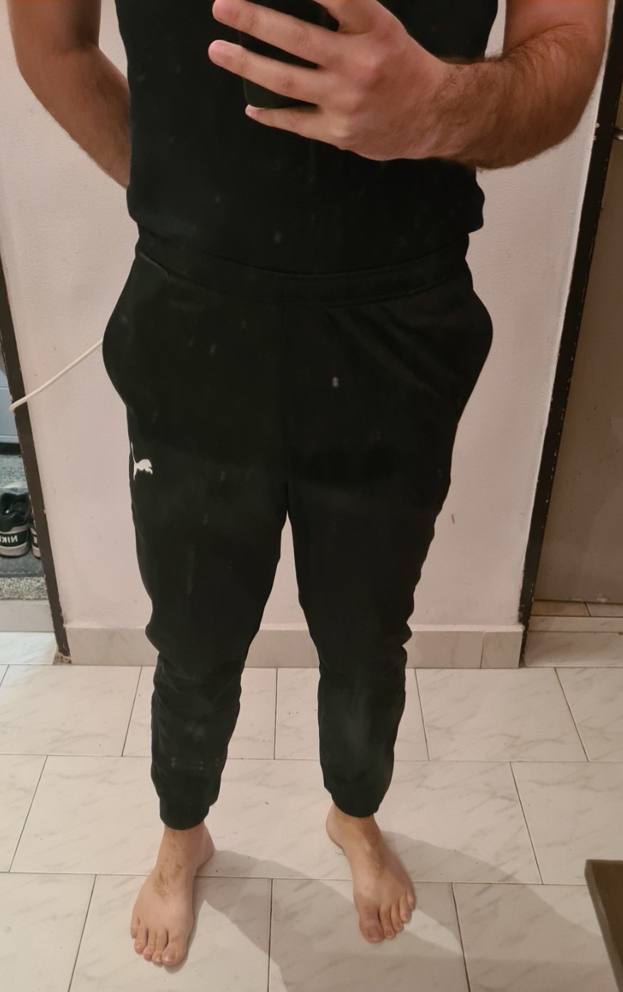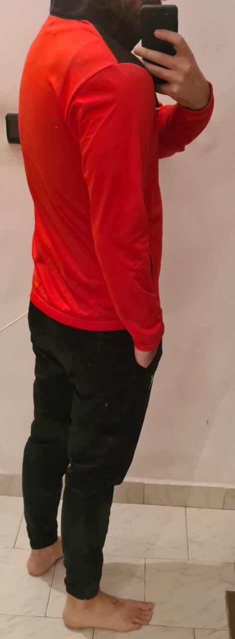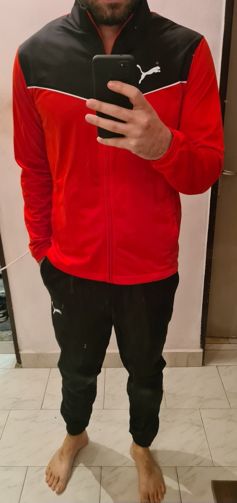 Ето спортния екип, височината на модела 😃 е 188 см, размерът е L, материята е гладка, плътна, мисля че е някакъв вид жарсе. Много добре ушит и въобще за 52 лв е топ!