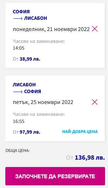 Да споделя една много добра цена за Португалия за края на ноември - 137лв отиване и връщане с дискаунт.
