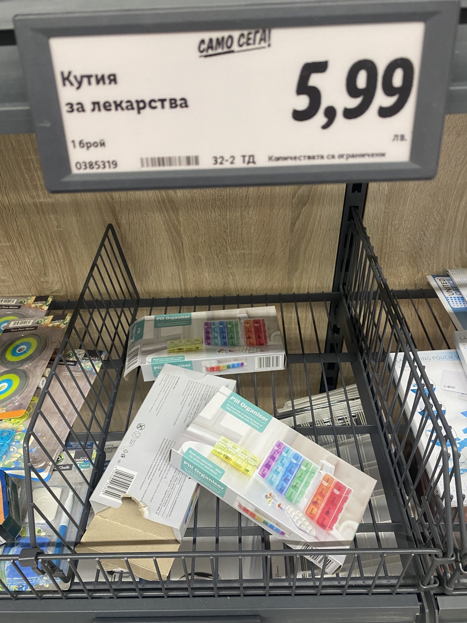 Точно същият органайзер за лекарства от снимката по-горе го има в Джъмбо.