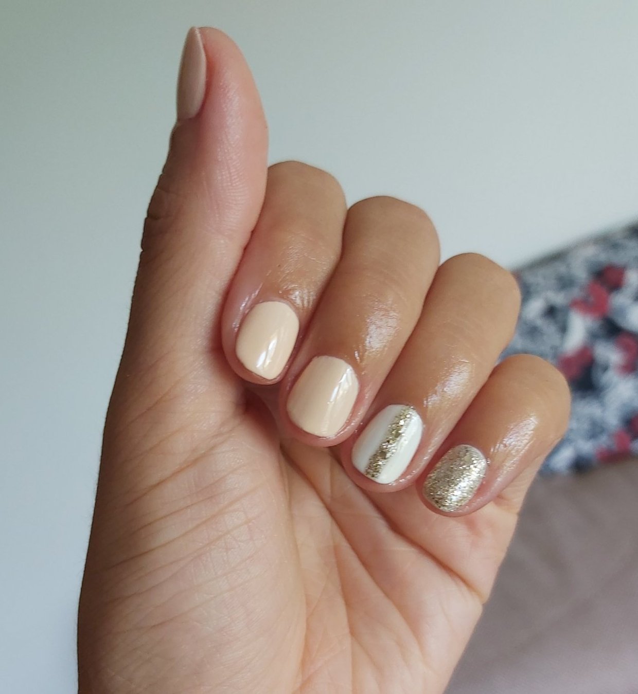 От мен бял маникюр, покрит със златист топер и на краката съм със същата комбинация от седмица - разкошно стои.