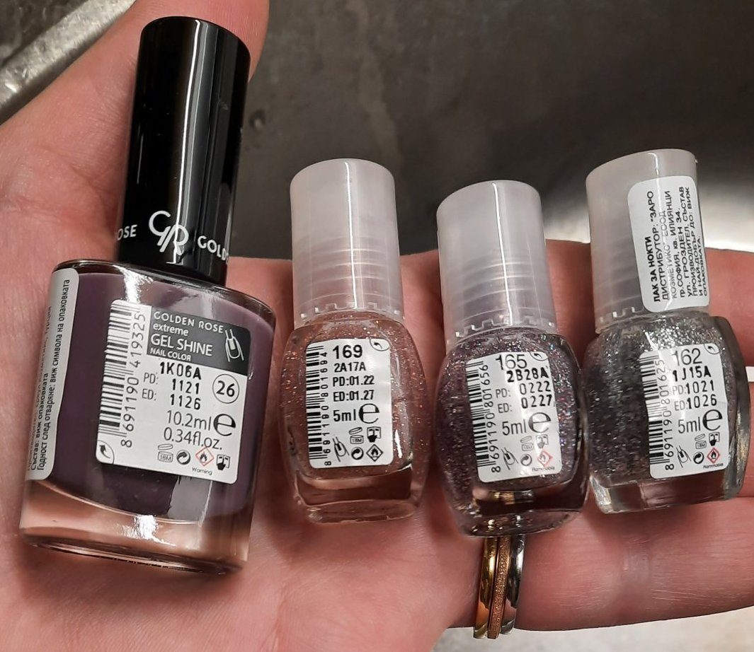 Аз искам да благодаря и тук на Мимоза, че сподели с мен част от нейното златисто фолио!😊 И също за лаковите изненади, лилавия ГР отдавна го бях харесала🥰: