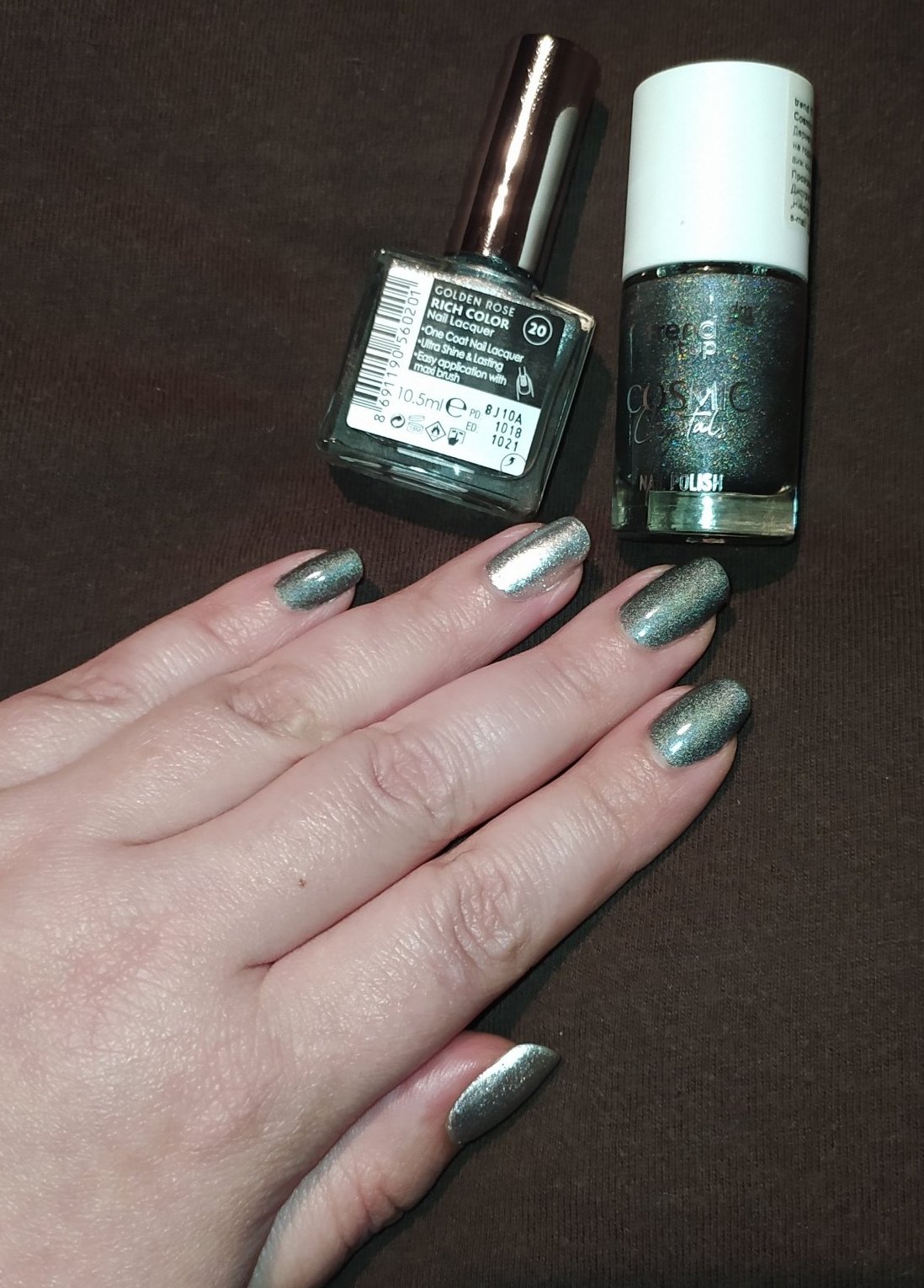 Сиена, нищо не съм освежавала, много рядко и само с определени лакове съм слагала още един пласт топ някъде по средата на седмицата. Има слой основа на Есенс дето я коментирахме тия дни, два слоя лак и щедър слой Сеш отгоре. Туйто. Тази холограмната серия на Тренд ит Ъп наистина е много приятна за нанасяне, яд ме е че не си взех повече цветове когато ги имаше,  хем живеех на 5 минути пеша от ДМ тогава.