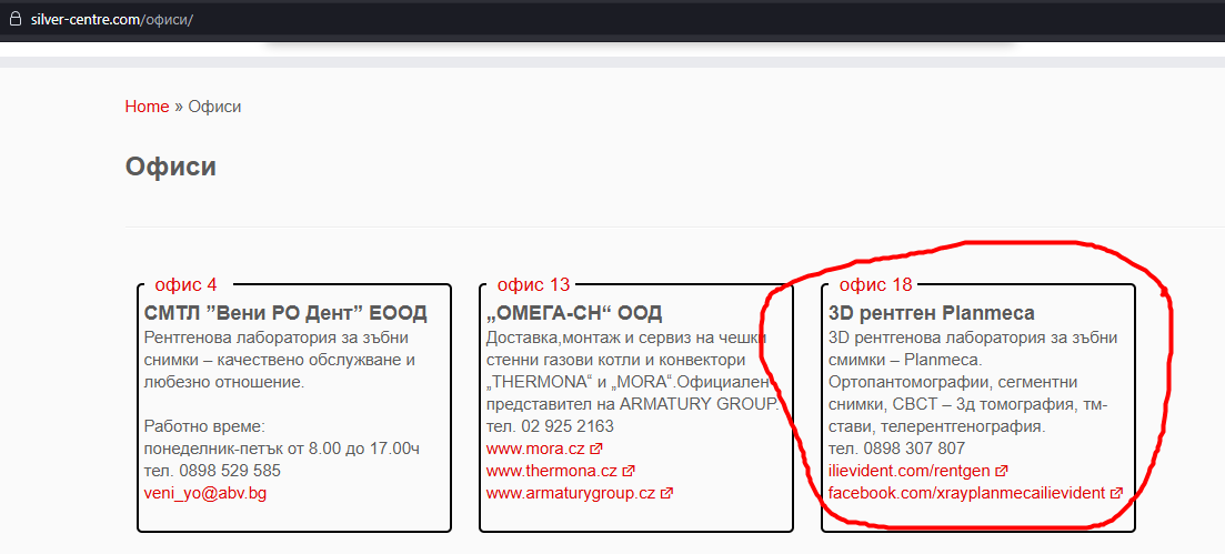 Здравейте, някой знае ли как се казва лабораторията за зъбни снимки на етаж 3 в Силвър център? -трябва да се свържа с тях.