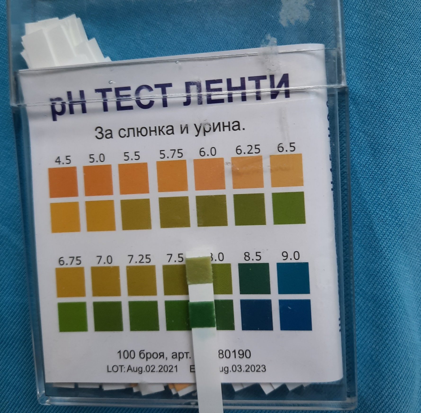 Защото скоро им изтича срока на тези ленти и са започнали да показват вече правилните числа. Шегувам се. Само с много престараване да не подминеш 9. Пробвах чаша чешмяна вода показва около 7.5, а като добавих една капсула прах от магнезиев цитрат се вдигна на почти 10. Въпреки че той много слабо се разтвори във водата. Значи с 2-3 капсули дневно е възможно да се неутрализира киселинноста на всякаква храна.
