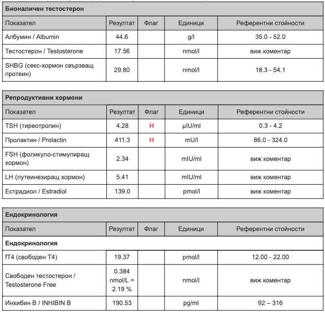 Някой запознат ли е с тълкуването на резултатите на тези изследвания? Има ли проблем на пръв поглед? Ще ги обсъдим разбира се и с лекаря, който ги назначи, но не знам кога ще е точно. ТСХ както писах преди е било още по-високо, за пролактина не са спазени условията за взимане.