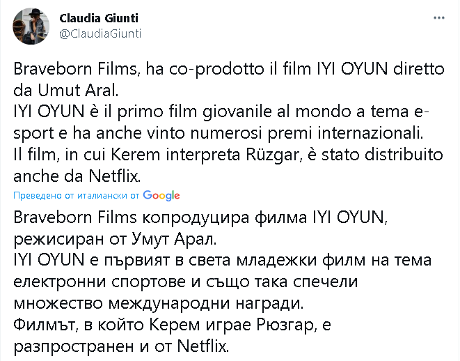 "Brave Born Films копродуцира филма „IYI OYUN“, режисиран от Умут Арал. „IYI OYUN“ е първият младежки филм на тема електронни спортове в света и също така спечели много международни награди. Керем Бурсин играе ролята на "Rüzgar" в този филм."