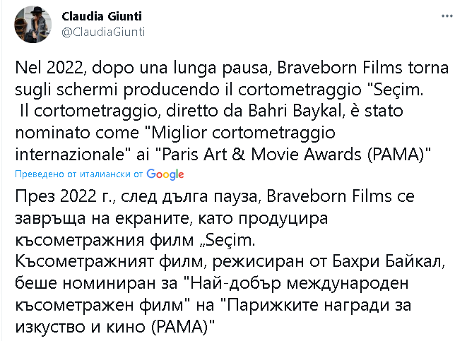 "Номинацията на "Seçim" за международни награди не е нова за Brave Born, двата филма, които продуцираха, спечелиха: