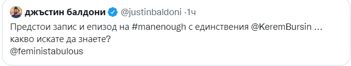 И очаквано събитие с Керем. Предстои запис на епизод с наименованието "Man enough".