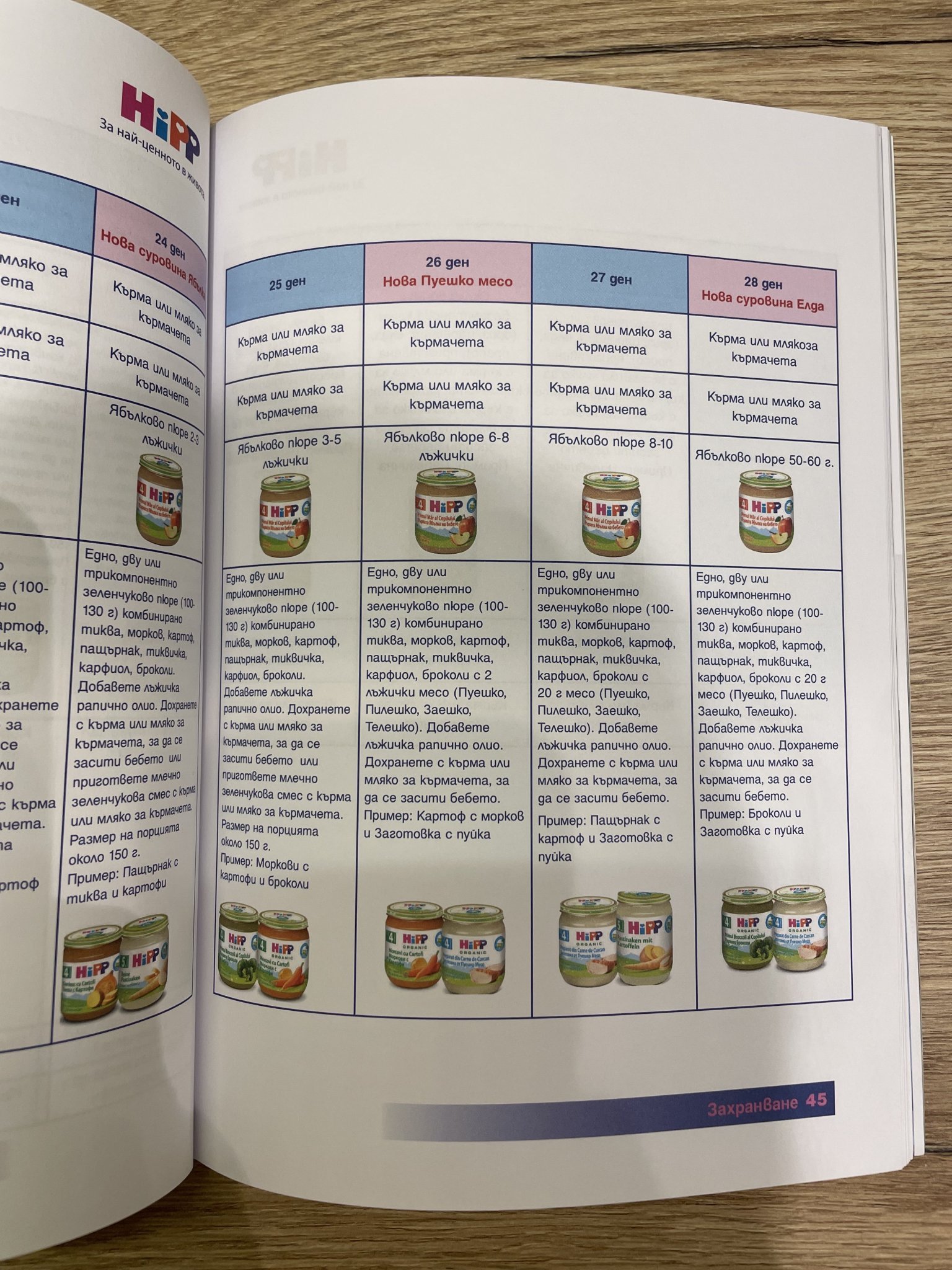 Около 500 гр в качил малчо май... Ние пропускаме консултацията за 6 м. Бяхме днес ама в кабинета за болни... И не го е мерила и т.н...а аз вкъщи може и грешно да съм измерила... Той и не яде пюрета още... По 5 10 лъжици... Тая книжка я имам на телефона, като схема ама аз по моя преценка съм вкарала нещатата.. 🙄😊 Той яде много разбито... Някой път на час гладен, в следващите дни на 4 часа