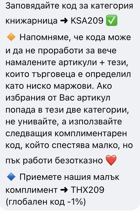 Здравейте. Имам код за 10% на НЕнамалени играчки в Озон. Ще го дам, ако ще свърши работа на някого.