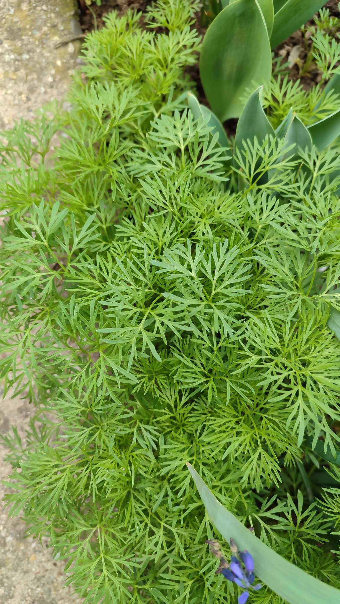 Нямам снимка, а това лилавото е зюмбюл, просто е излязал на снимката. Само листата зелените имам, приличат даже на морковен и листа, но е цвете незнайно Simple Smile
