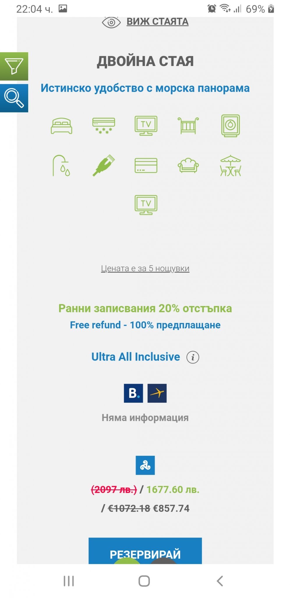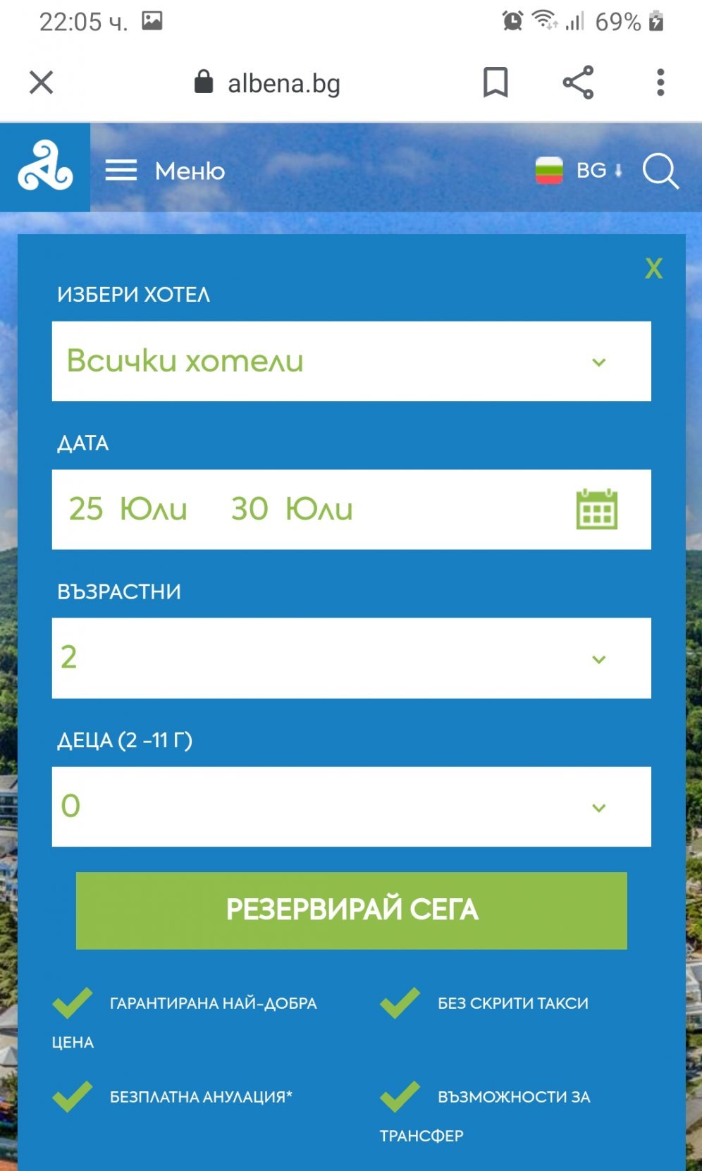 Ако някоя оферта Ви харесва, кликвате Резервирай. Тогава сайтът Ви приканва да си влезете в профила, където можете да допълните изисквания и отстъпки към резервацията.