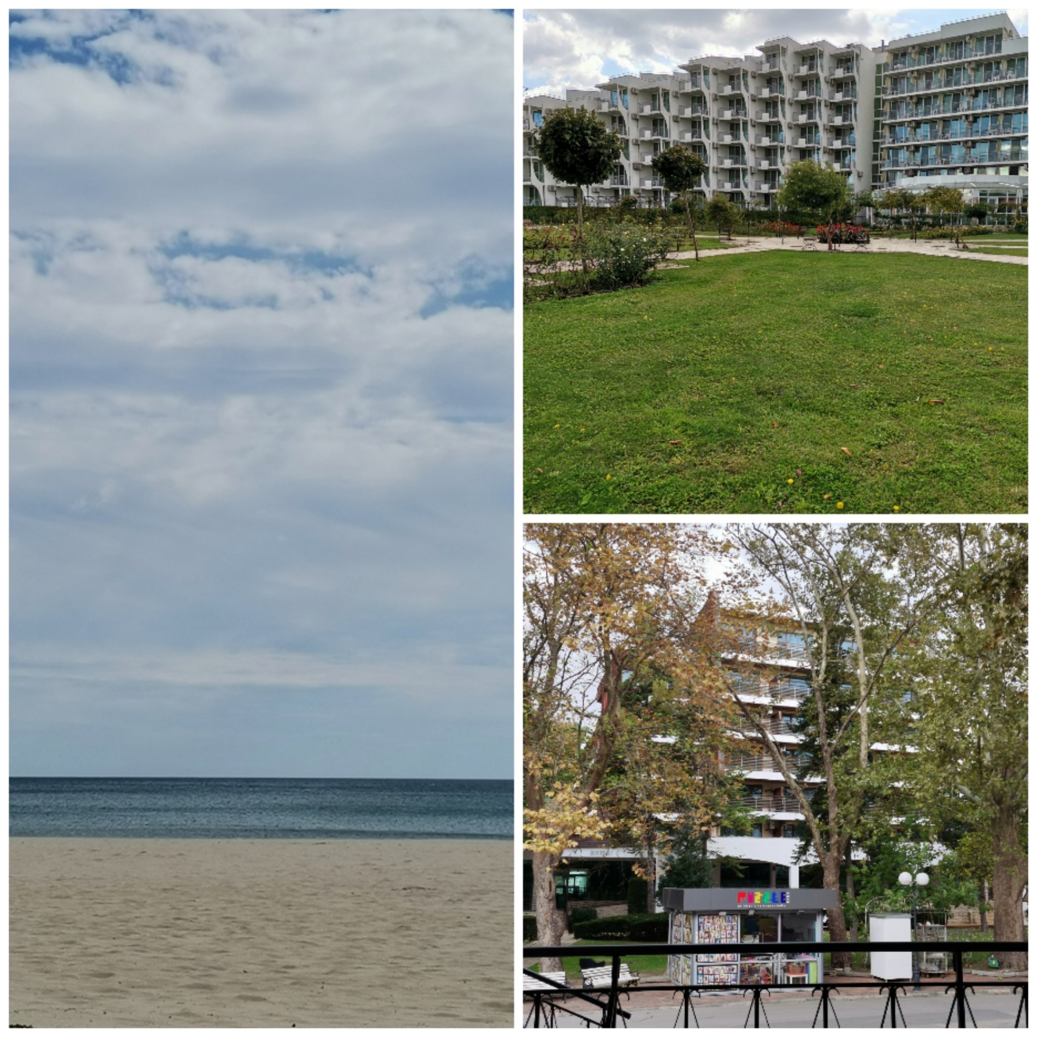 Много спокойно, тихо, няма хора. Атракционите, магазините, заведенията по търговската улица са затворени. Хапнахме много вкусна пица в италианския ресторант. Пихме чудесно кафе в Маритим Парадайс блу. По крайбрежната работеше ресторанта срещу Калиопа. Дъщеря ми и зет ми в петък хапнали там вкусен пържен сафрид. Те са в Калиакра. От храната са много доволни. Има ябълков сок, в стаята зареждат кафе, чай.