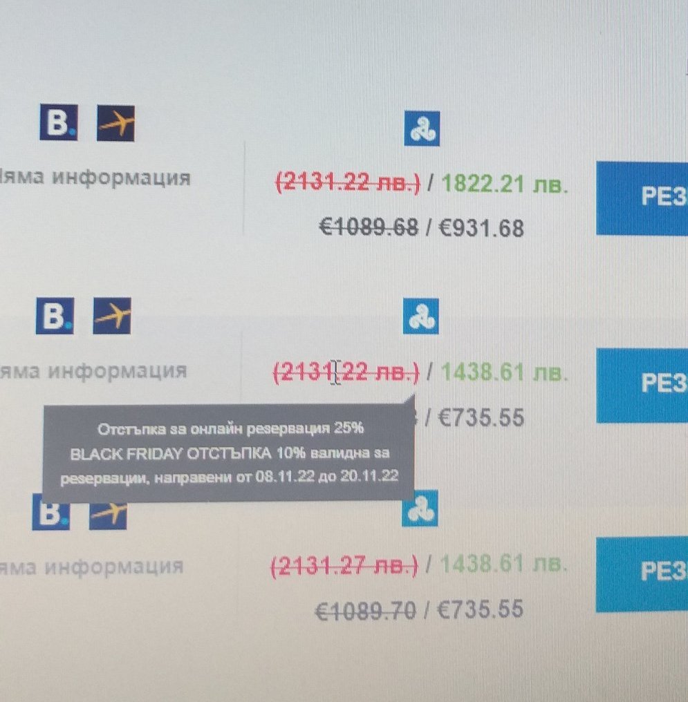 Случайно попаднах днес на цени с - 10% отстъпка Черен петък, за резервации направени в периода 08-20.11.2022г.