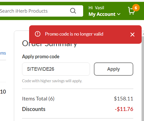 Отказах си поръчката с "отстъпките" за 26%. Днес вече са свалили цените на всички продукти и ще ми излезе по-изгодно сега през нов акаунт да поръчам наново. Тези номера не ги правят за първи път. Големи крадци на дребно станаха и iHerb.