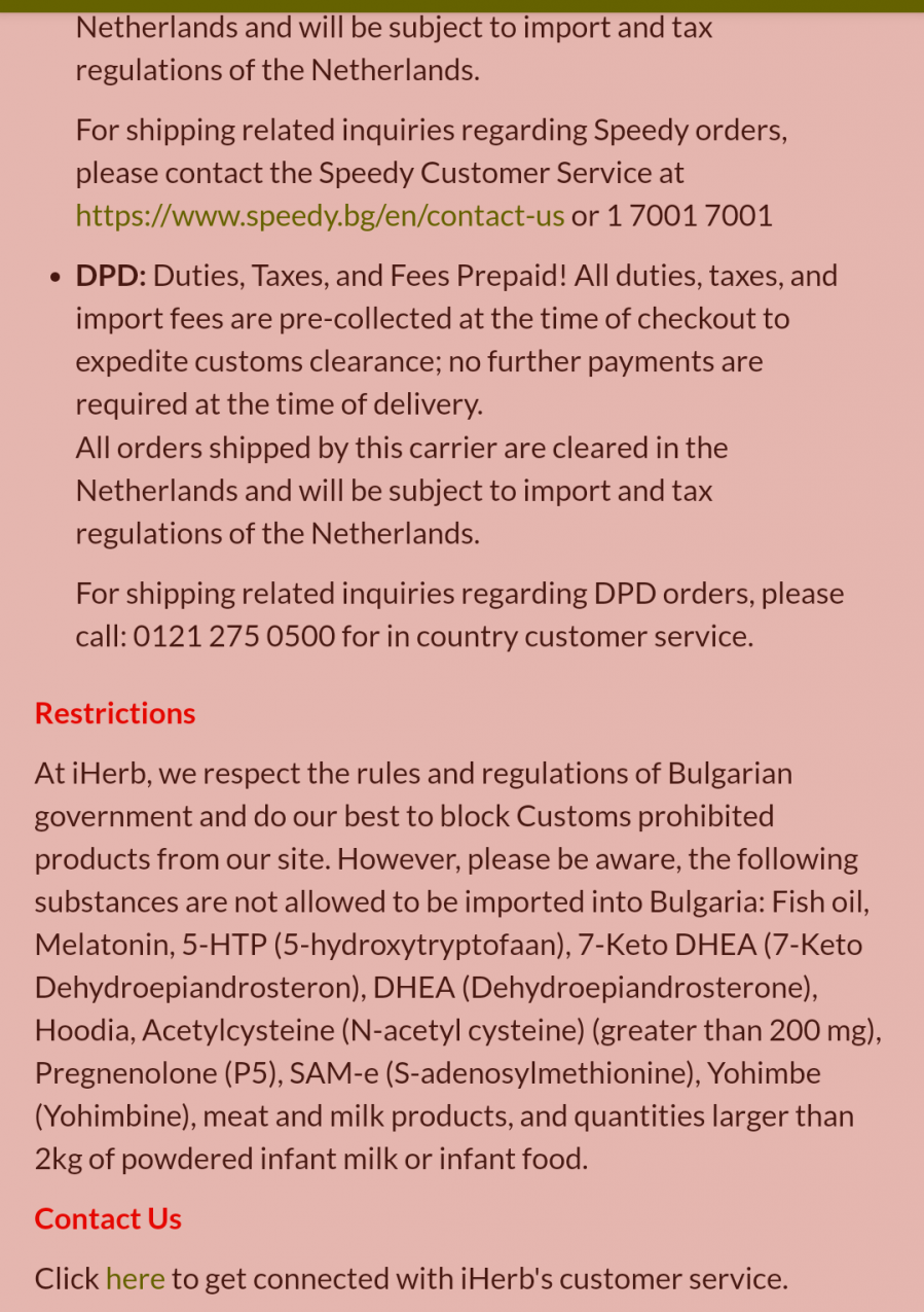 Виждам, че в информацията за доставка са дадени определени неща, които не се допускат до България. Едното е рибено масло о.0