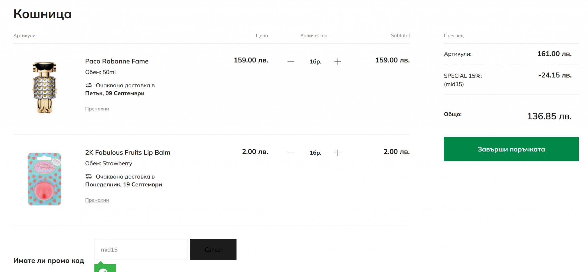 с код - 10 % - код: 2410 + подарък чанта с червило.