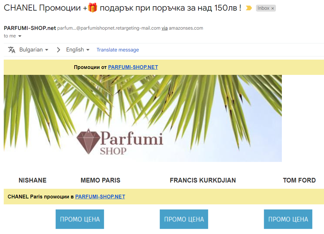 Написала съм че в Парфимо цената е по-ниска, но шишето в оригинал не е розово като при тях и затава не давам снимка/линк 🙂