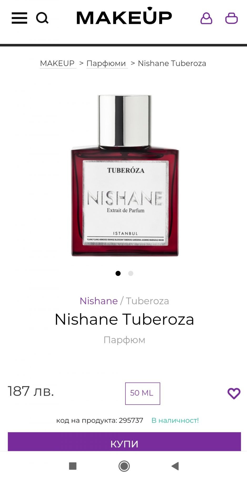 В Makeup Nishane Tuberoza 187 лв