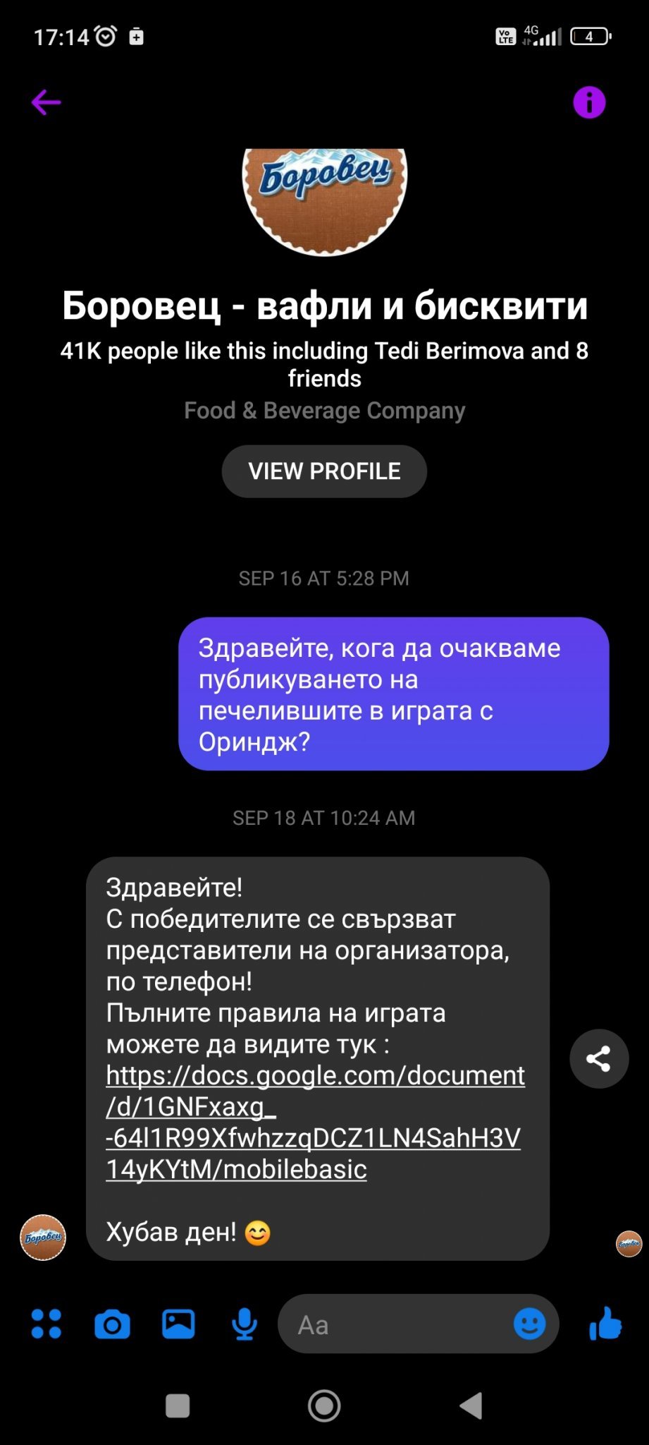 Има ли някой с награда от Боровец и Ориндж? Много съмнителна игра! Обявяват печелившите само по телефон!
