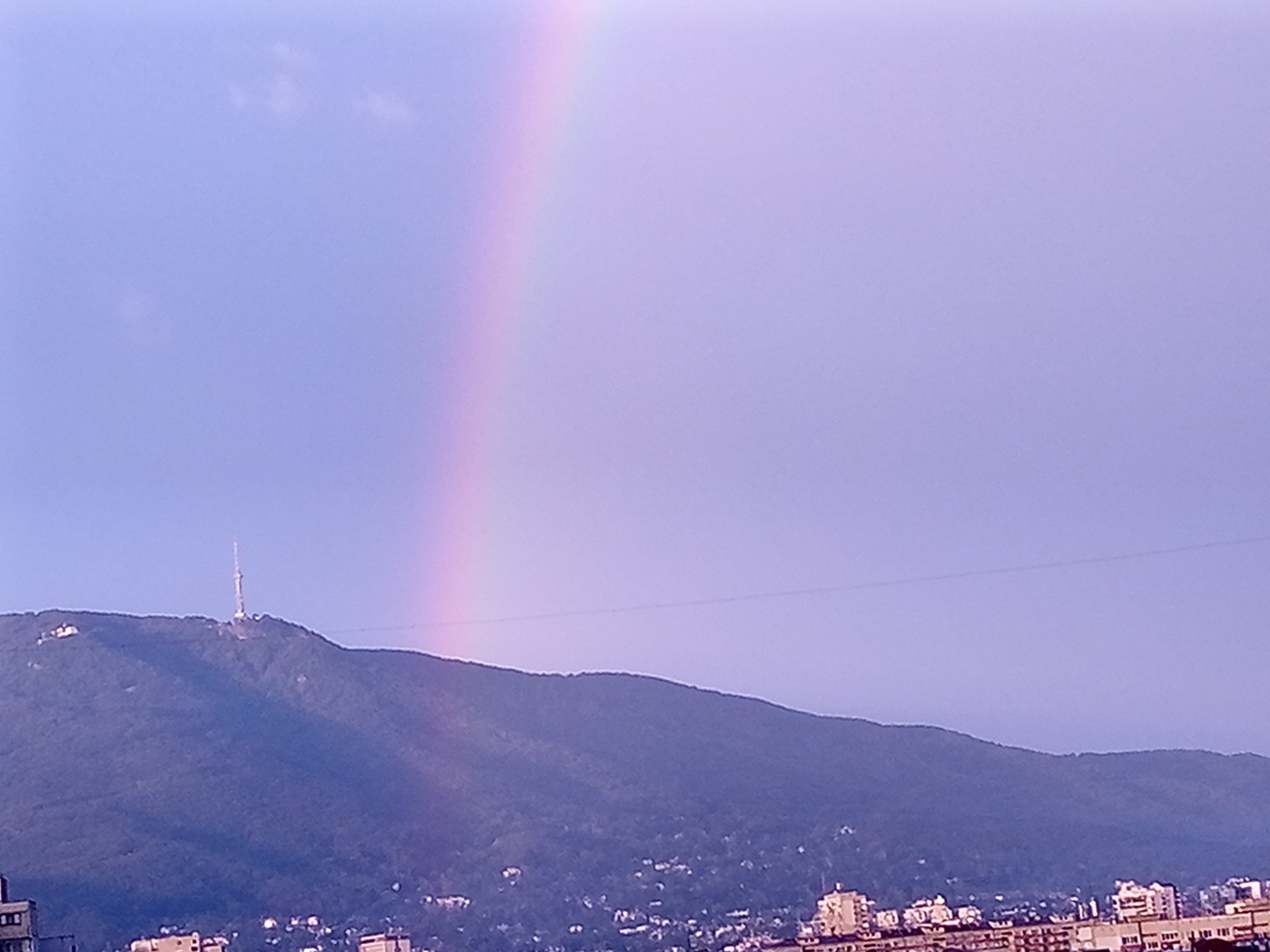 О, Уиш, много мило се изказваш за моята снимка. С този телефон хубави снимки не стават.  Тази се получи най-малко зле, затова нея ви представям. Нащраках още през другия прозорец, но от там се виждат само покриви и ТЕЦ под красивата дъга, грозно е и ви ги спестих.