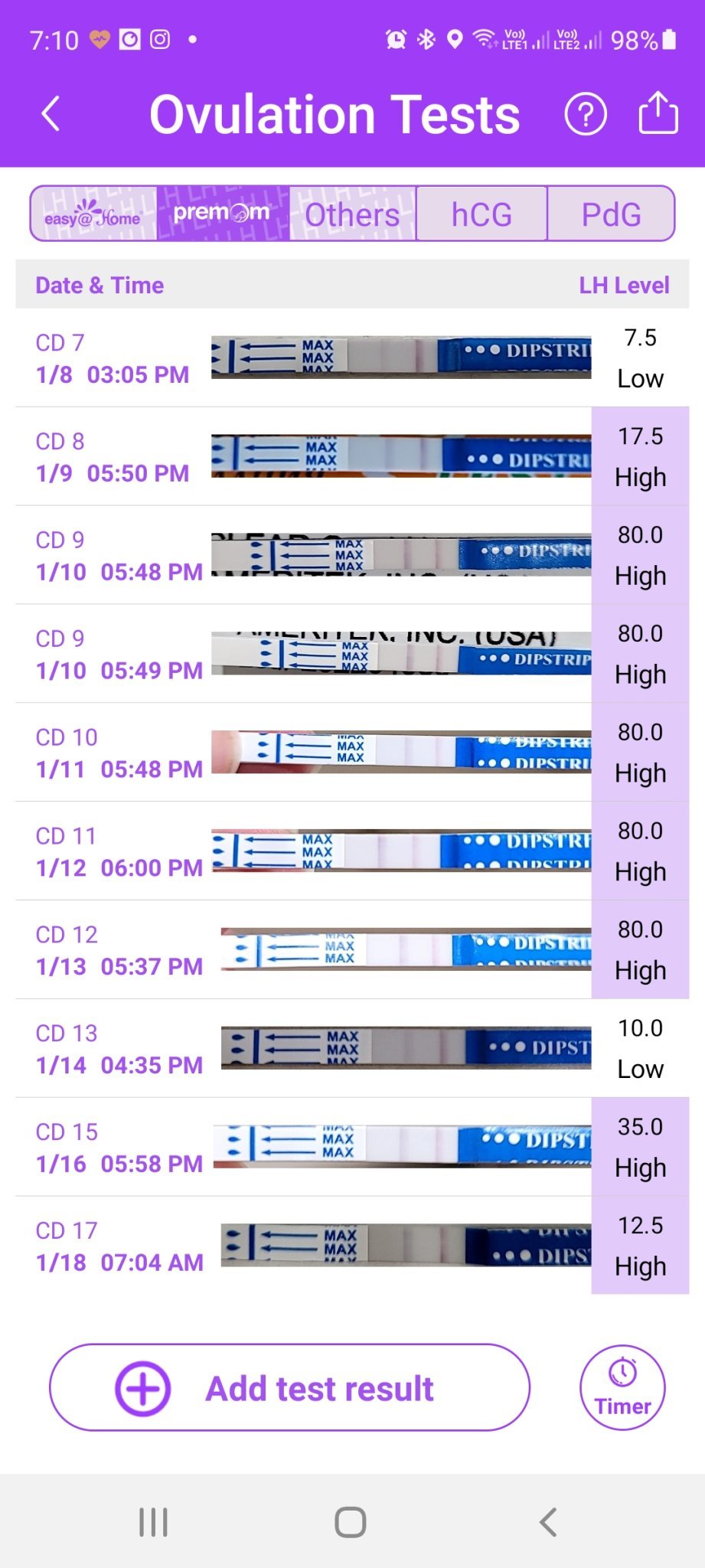 И при мен сутрешните тестове работят. Моята стратегия е - тествам всяка сутрин, щом в дадена сутрин видя мнооого наситена линия, но все още не колкото контролната, гледам да пия по-малко течности и в ранния следобяд тествам пак - тогава вече линията е станала толкова наситена колкото контролната или дори по-наситена.
