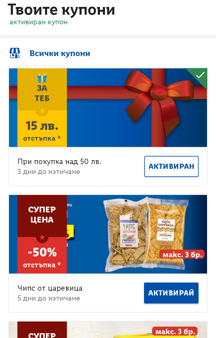 За да подарите купони, първо трябва да ги активирате и след това да направите скрийншот на картата си Lidl Plus, като се уверите, че името ви е замъглено или не се вижда. След това изпратете скрийншота в лично съобщение на получателя. Те трябва да отворят снимката на своя телефон и да сканират кода на устройството на касата, за да използват подарения купон.