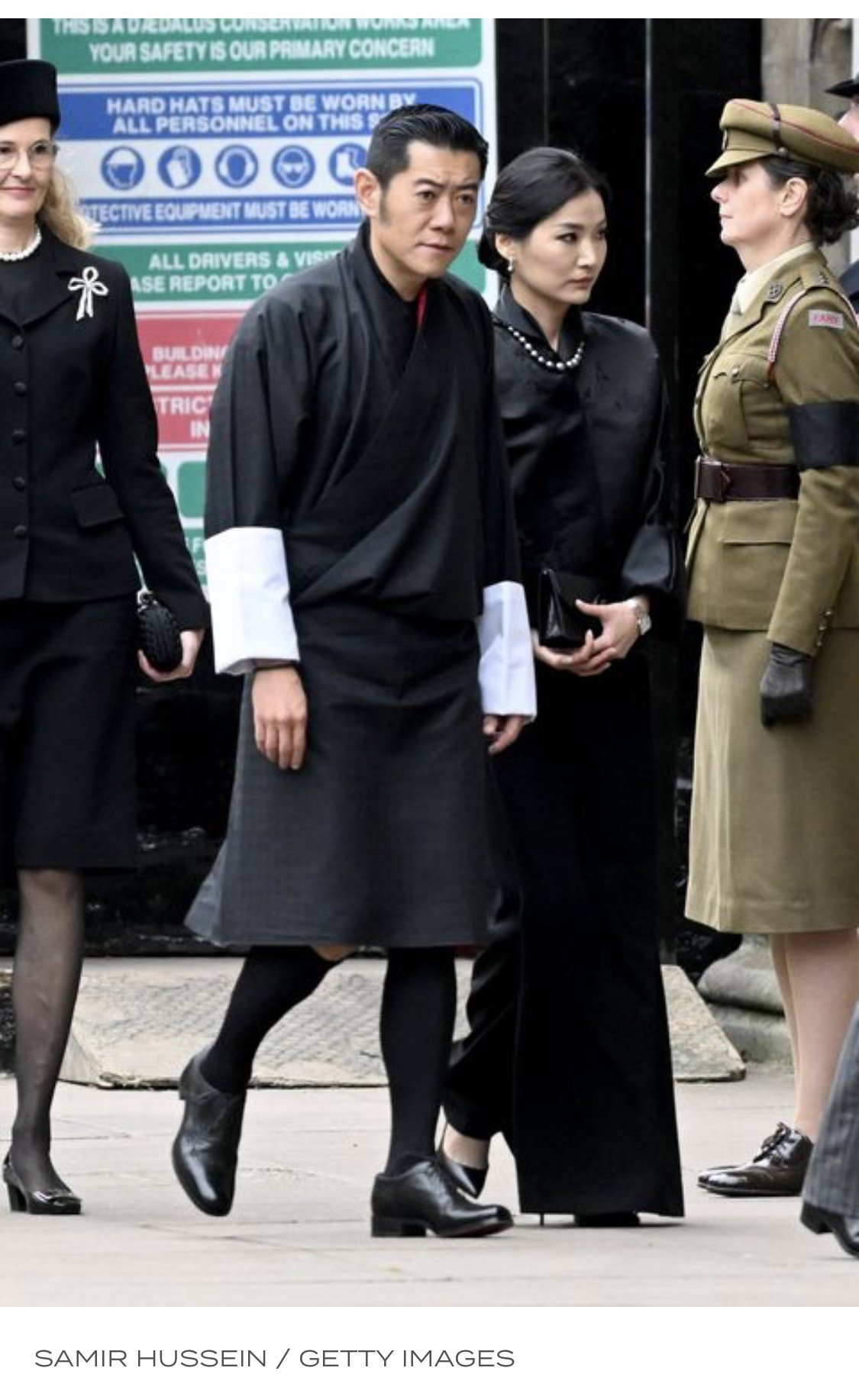 Бяха бутанците. По-напред в темата има тяхна снимка. Той с традиционното кимоно в черно с бели ръкави, тя до него изцяло в черно, пак нещо традиционно. Извинявай, не ми се търси.