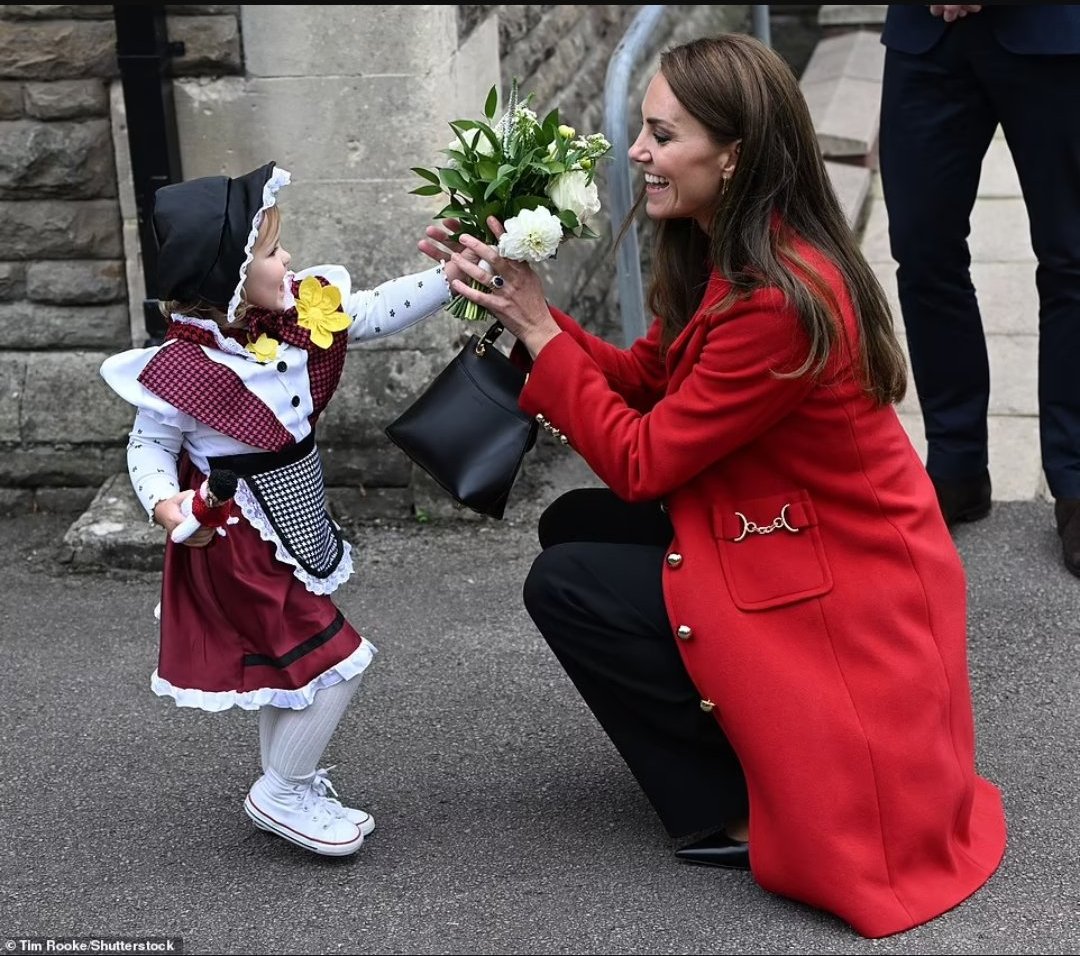 Много красиво детенце поднася цветята на Катрин! То съвсем мъничко, направо бебче.
